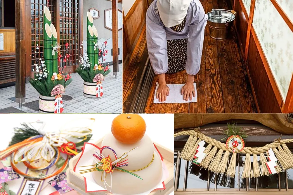 Trước Tết, người Nhật tiến hành Ōsōji (大掃除) – nghi lễ dọn dẹp nhà cửa, văn phòng, trường học thật sạch sẽ để “xua đi điều xui rủi và đón điều lành mới”. Mọi người tin rằng, nếu nhà cửa tinh tươm, vị thần may mắn Toshigami-sama sẽ ghé thăm và ban phước cho gia chủ. Sau khi dọn dẹp, họ bắt đầu trang trí nhà cửa bằng các vật phẩm truyền thống như: