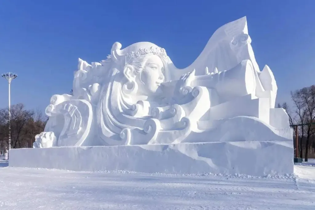 Song song với Ice World là Triển lãm điêu khắc tuyết Harbin tại Sun Island (Đảo Mặt Trời) – nơi quy tụ những tác phẩm nghệ thuật tuyết quy mô lớn. Những bức tượng khổng lồ được làm hoàn toàn từ tuyết trắng tinh khôi, mô phỏng các nhân vật, động vật, biểu tượng văn hóa và cả những mô hình kiến trúc nổi tiếng.