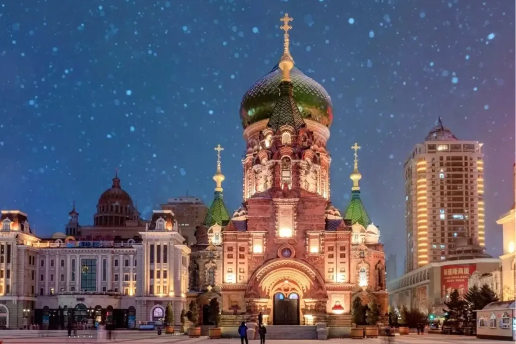 Nhà thờ Thánh Sophia là một trong những biểu tượng nổi tiếng nhất của du lịch Cáp Nhĩ Tân. Công trình với mái vòm xanh ngọc, tường gạch đỏ và phong cách Byzantine cổ kính. Vào mùa đông, khi tuyết phủ lên bậc thềm và mái vòm, nhà thờ trở nên lộng lẫy và đầy chất thơ, tạo nên khung hình tuyệt đẹp cho du khách yêu thích kiến trúc.