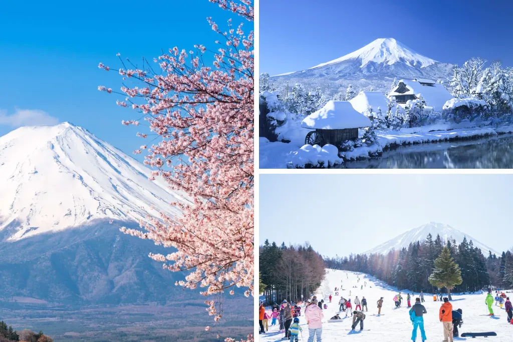 Núi Phú Sĩ – Biểu tượng Nhật Bản: Chiêm ngưỡng đỉnh núi tuyết trắng, tham quan làng cổ Oshino Hakkai và trượt tuyết nhẹ tại khu nghỉ dưỡng Fujiten – nơi bạn vừa vui chơi, vừa ngắm cảnh núi Phú Sĩ mùa đông hùng vĩ.