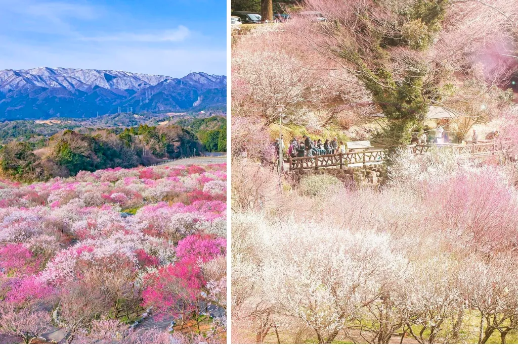 Vườn hoa mơ Atami Baien: Địa điểm ngắm hoa mơ đẹp nhất vùng trung Nhật Bản. Hàng trăm gốc hoa mơ nở sớm với sắc hồng, trắng và đỏ rực rỡ – báo hiệu mùa xuân đang về.