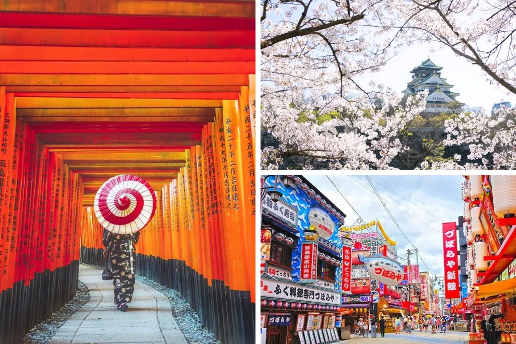 Kyoto – Osaka cổ kính và hiện đại: Thăm đền Fushimi Inari với hàng ngàn cổng Torii đỏ rực, lâu đài Osaka nguy nga và thiên đường mua sắm Shinsaibashi nhộn nhịp.
