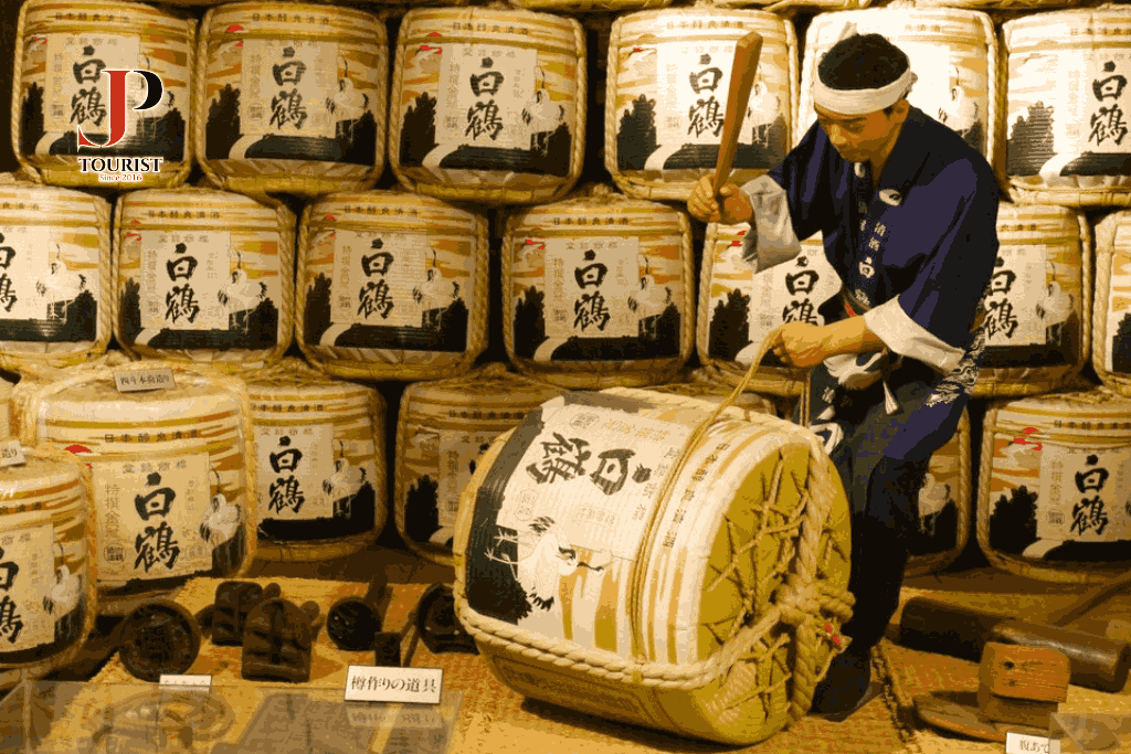 - Sau bữa trưa, đoàn dừng chân tại Bảo tàng rượu Sake, thế giới thu nhỏ của rượu sake, vì nơi đây tái hiện lại tất cả các quy trình để làm nên những giọt rượu làm say mê lòng người, mang “quốc hồn”, “quốc tuý” của xứ sở Phù Tang.