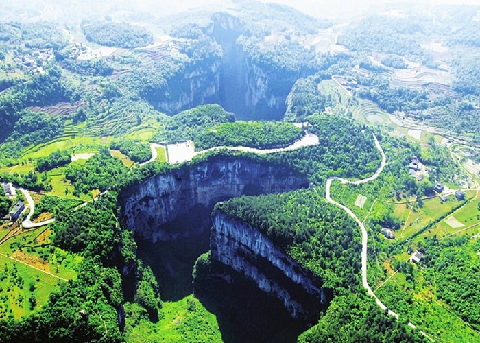 “Thiên Sinh Tam Kiều” – kì quan địa chất hiếm có và ấn tượng với ba cây cầu đá vôi tự nhiên được đặt tên theo 3 loài rồng cổ của Trung Quốc: cầu Thiên Long, cầu Thanh Long và cầu Hắc Long, trong đó cây cầu hùng vĩ nhất mang tên "Thiên Long Kiều" cao 235m, bắc ngang qua thung lũng của quần thể núi đá vôi ở công viên địa chất Vũ Long. (đã bao gồm xe đưa đón, xe điện di chuyển).