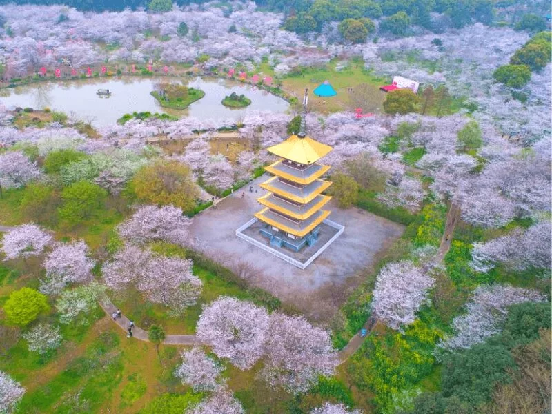 - Công viên Guishan là một trong những địa điểm ngắm hoa anh đào đẹp nhất ở Trung Quốc nói chung và Vũ Hán nói riêng. Vào tháng 3 hàng năm hàng trăm gốc hoa anh đào nở rộ, nơi đây có hơn 300 loại hoa anh đào khác nhau đua nhau khoe sắc khi mùa xuân về, du khách như lạc vào xứ sở thần tiên khi đến tham quan tại đây.